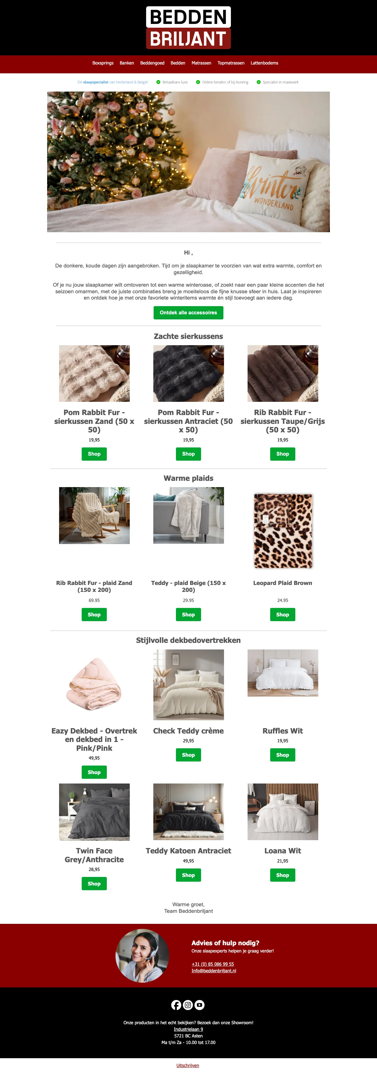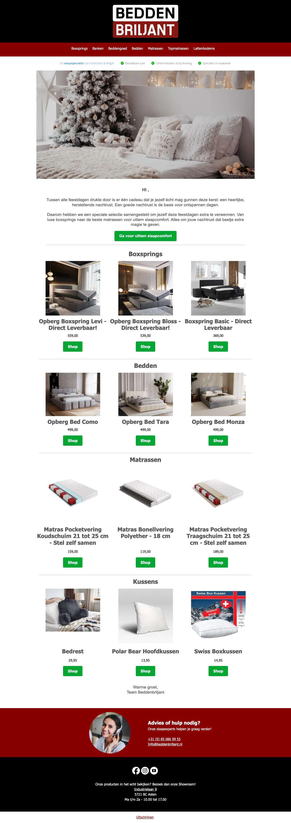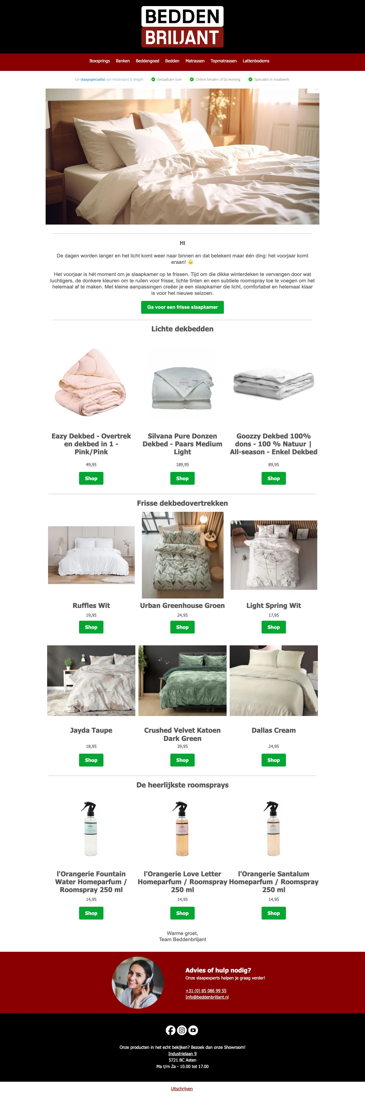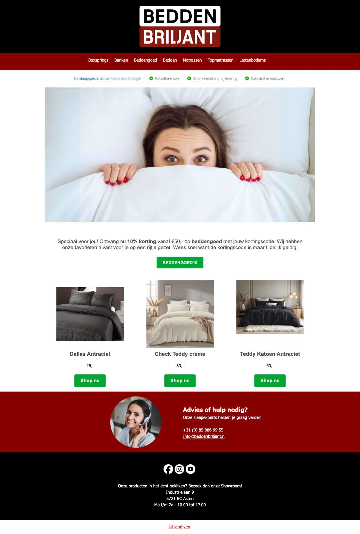 Bij aankoop van een boxspring bij Beddenbriljant krijg je nu gratis een dekbed en kussens. Dit is de perfecte gelegenheid om je slaapkamer in één keer compleet te maken. Geniet van een heerlijke nachtrust met deze comfortabele extra's die je slaapervaring verbeteren.
