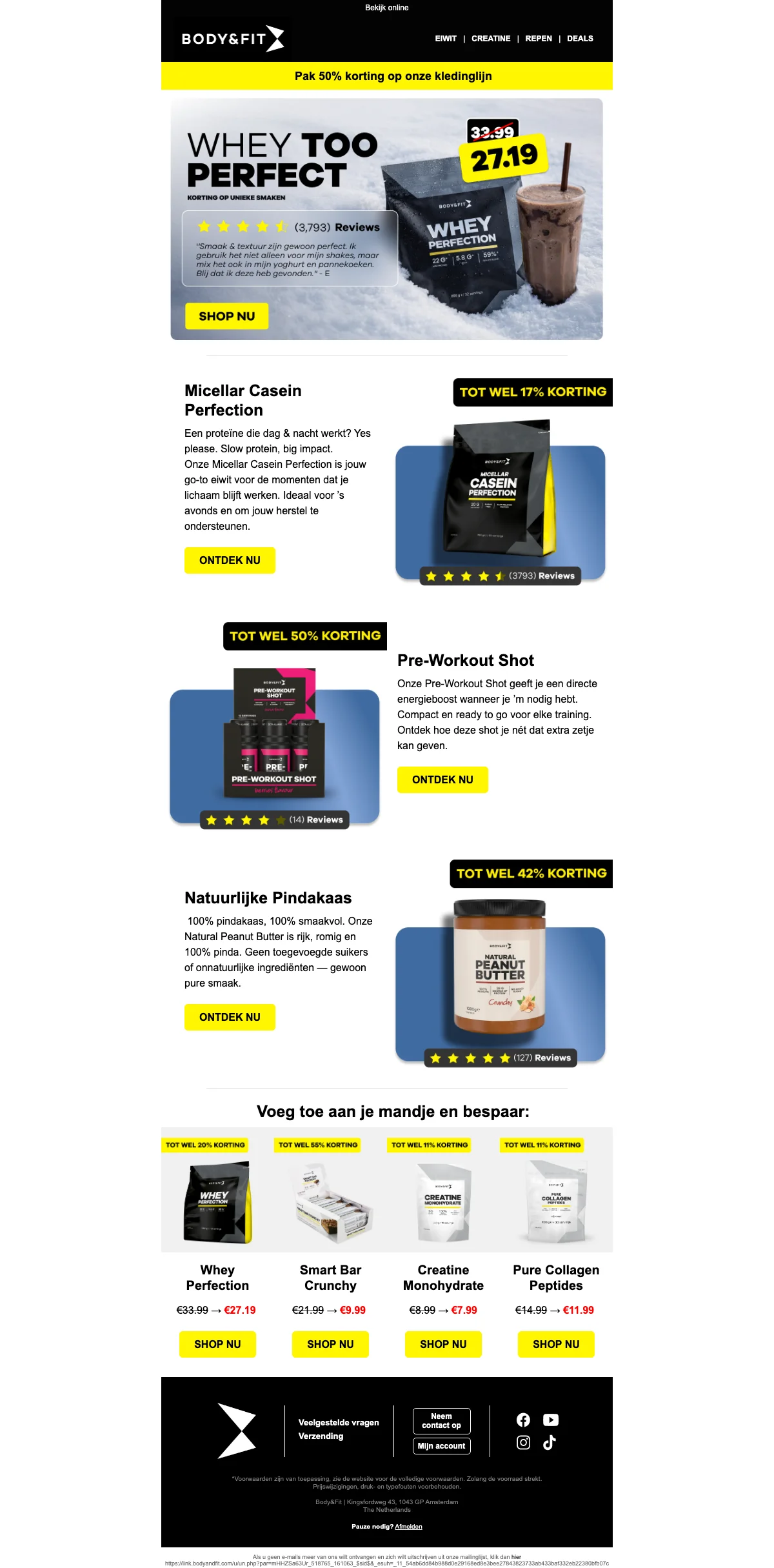 Profiteer van een fantastische korting van 25% op Whey Isolate XP eiwitten van Body&Fit. Perfect voor iedereen die zijn spierherstel wil optimaliseren na een workout. Geniet van de hoge kwaliteit eiwitten die je lichaam nodig heeft voor groei en herstel. Mis deze kans niet om je voorraad aan te vullen tegen een gereduceerde prijs.