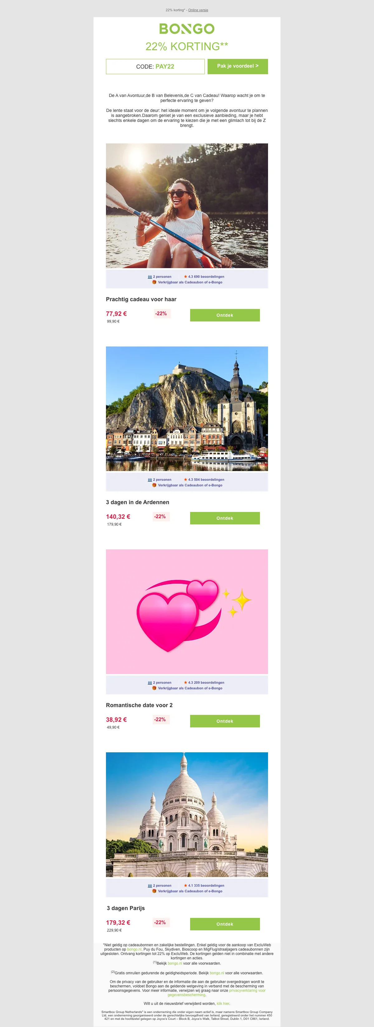Bongo Originele belevenissen geschenkbonnen 10%