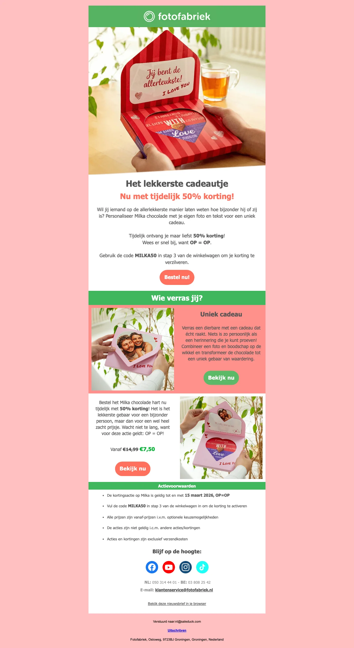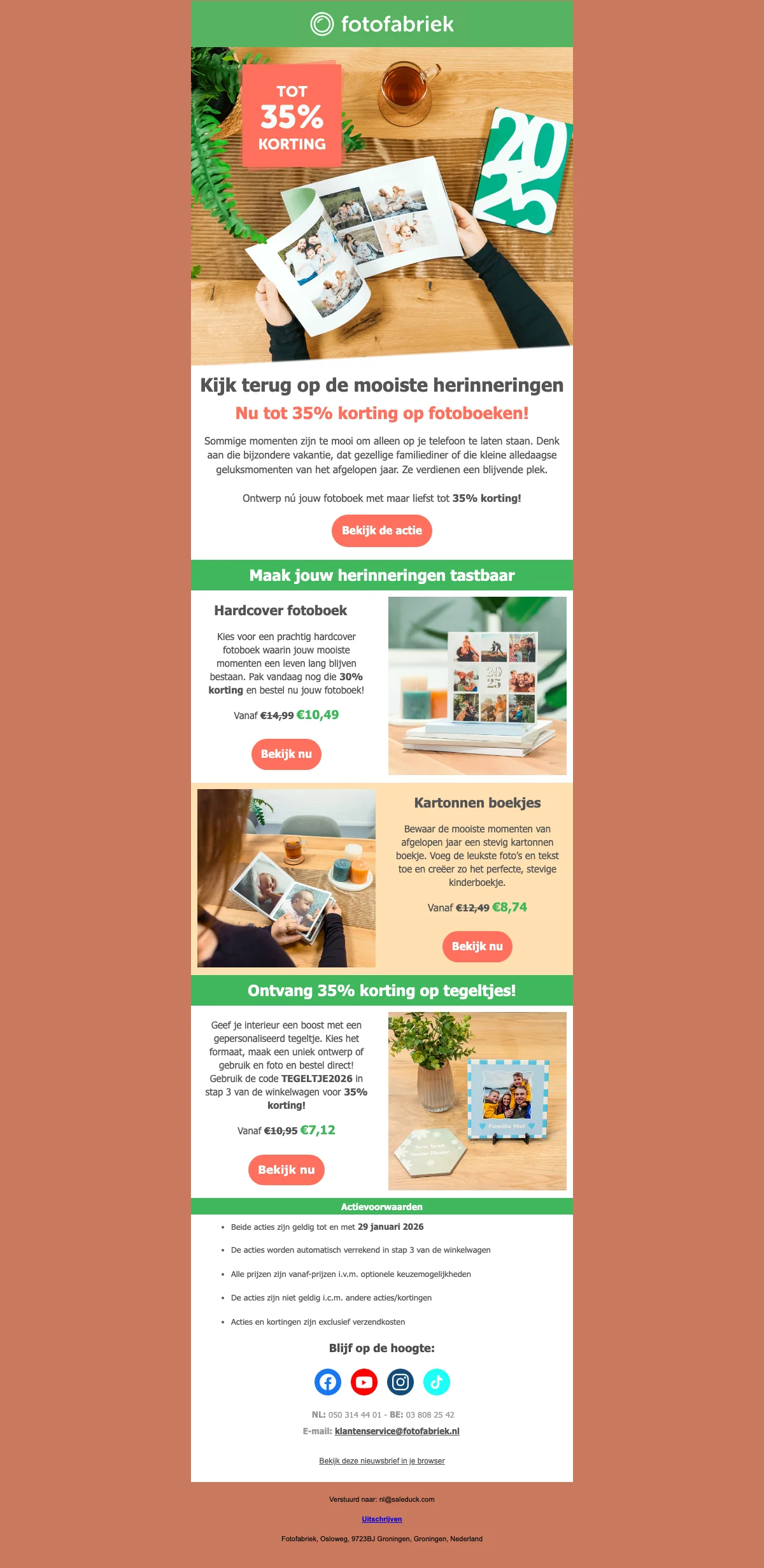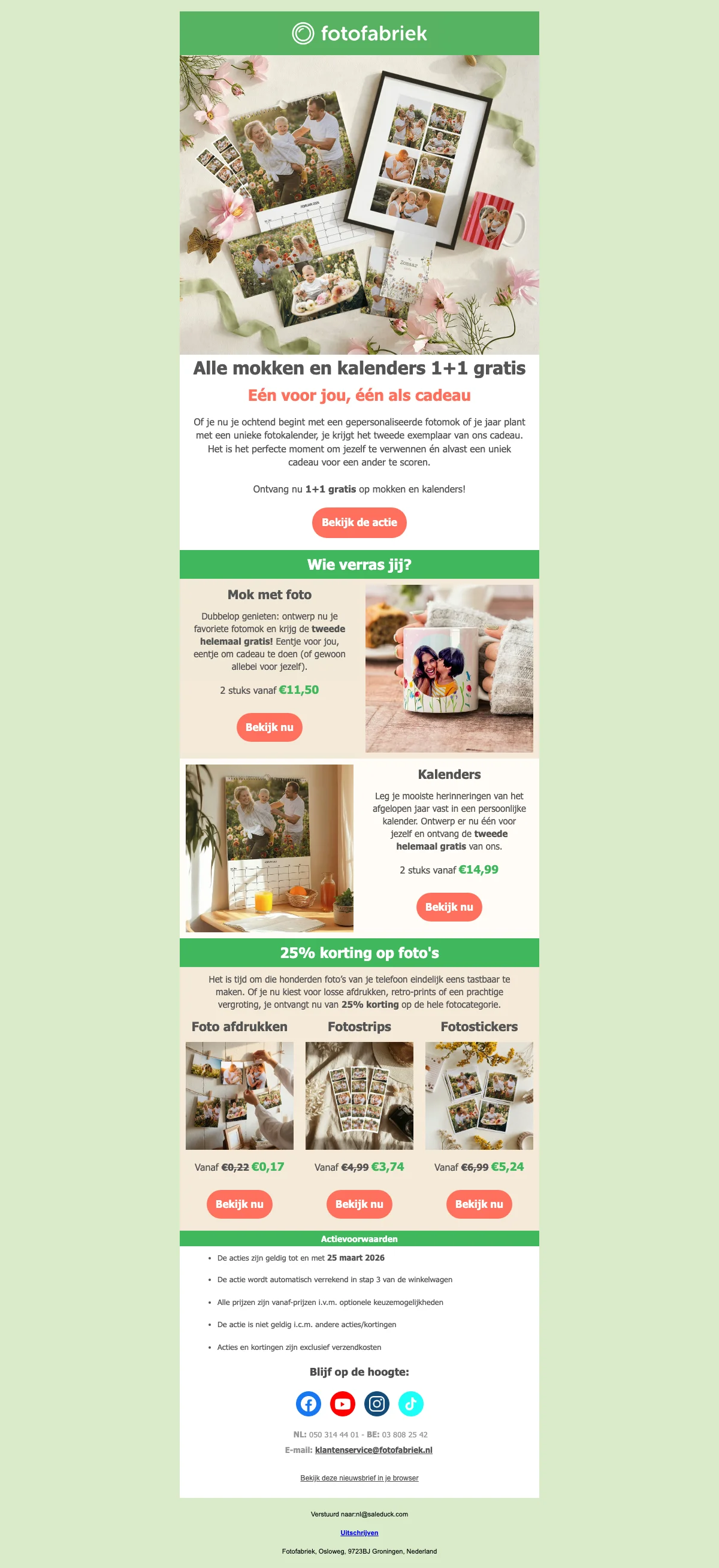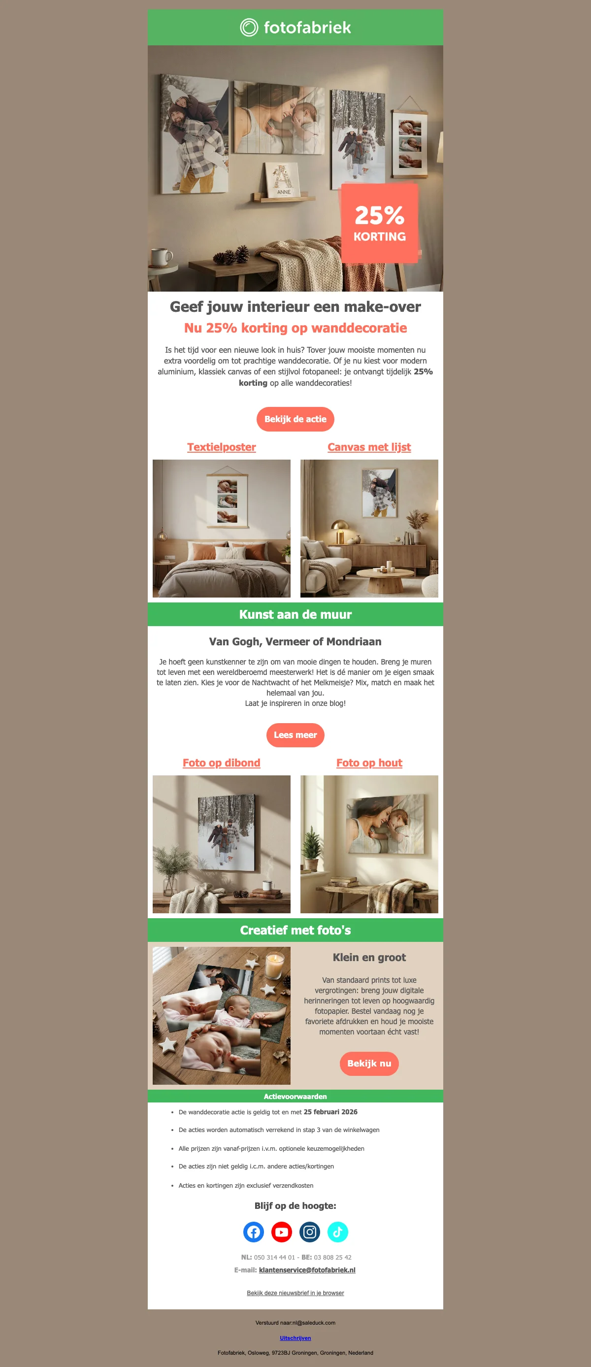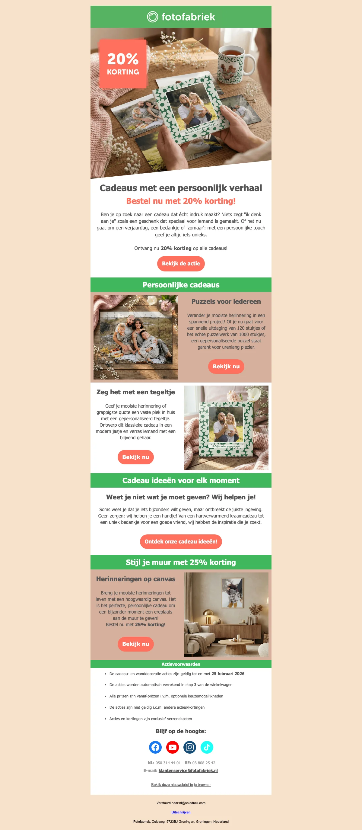 Ontdek de diversiteit van onze cadeaucollectie en bespaar 25% op je aankoop. Van fotoboeken tot unieke wanddecoraties, er is voor ieder wat wils. Deel deze actie met vrienden en familie en geniet samen van de voordelen.